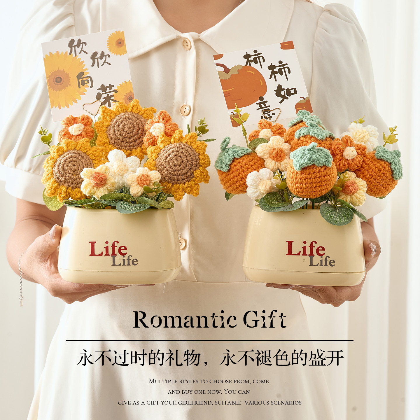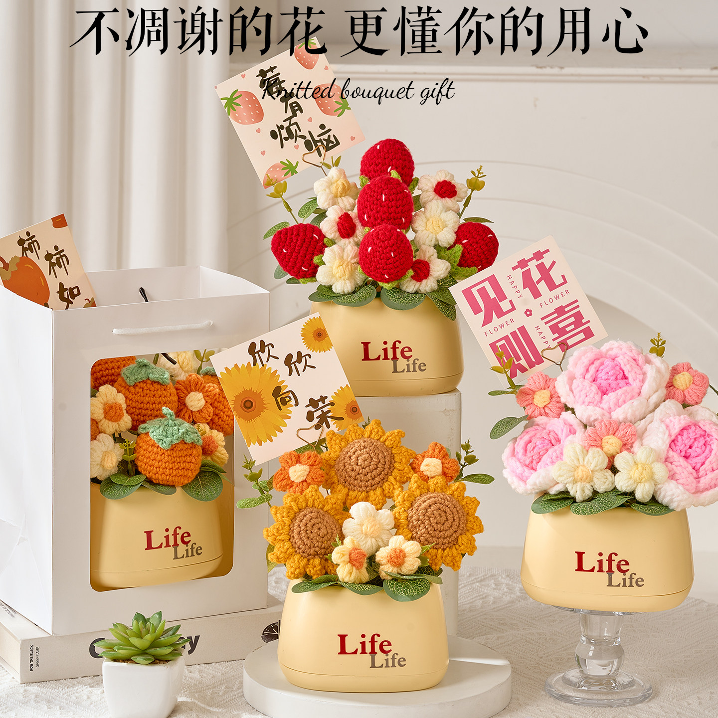 天猫母亲节礼物实用礼品送妈妈老师手工针织盆栽小摆件女生生日伴手礼