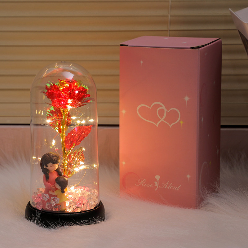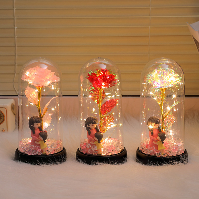 天猫母亲节礼物实用送妈妈发光永生花玫瑰花小夜灯创意生日礼物高级感