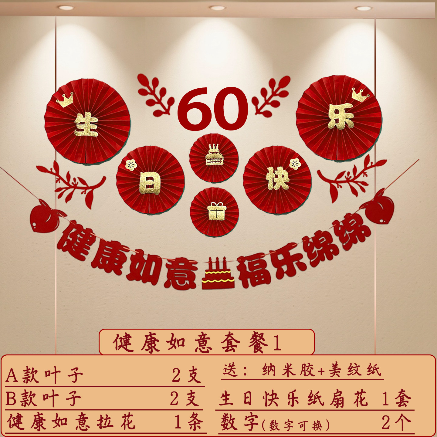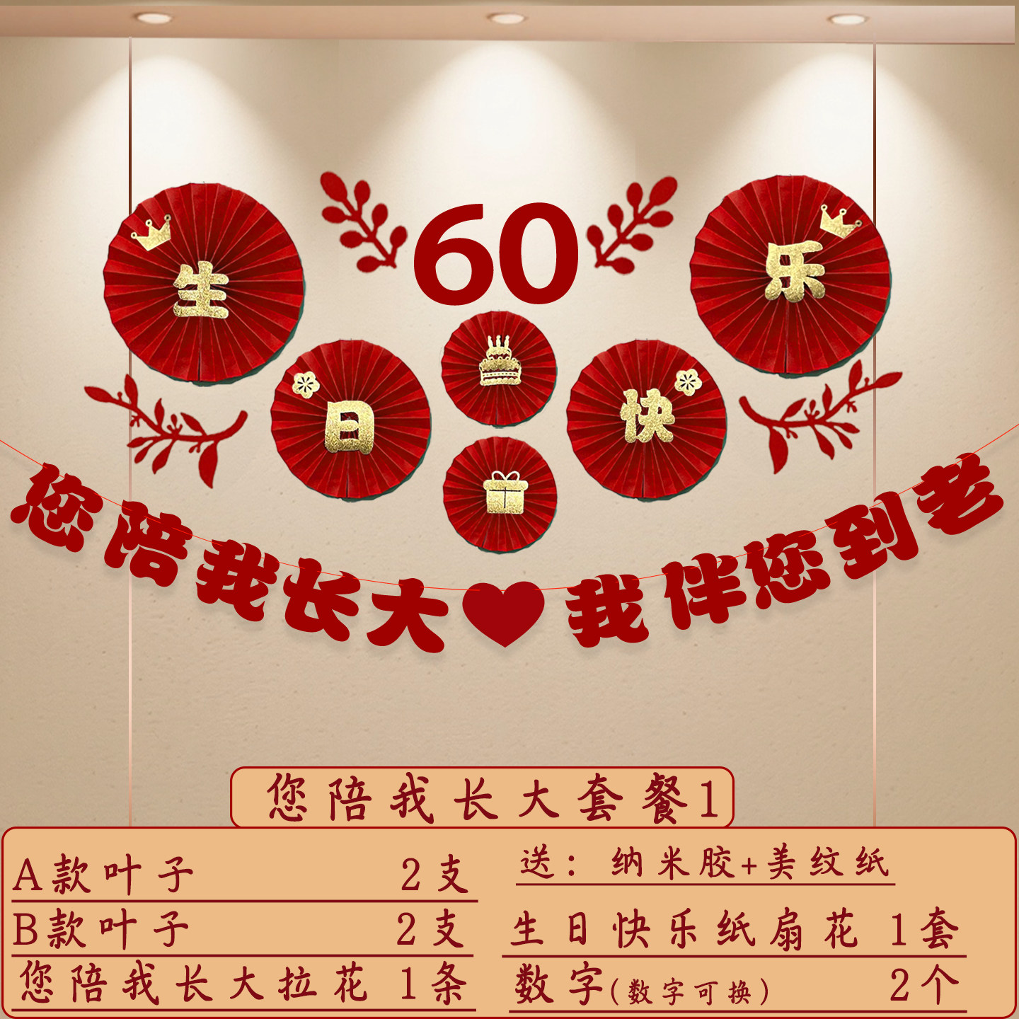 淘宝爷爷奶奶生日场景装饰布置60岁爸爸妈妈寿宴纸扇灯串拉花布置用品