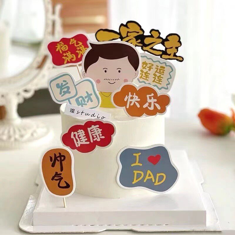 男神男士蛋糕装饰港风八方来财插件爸爸生日仿翻糖發字烘焙插牌