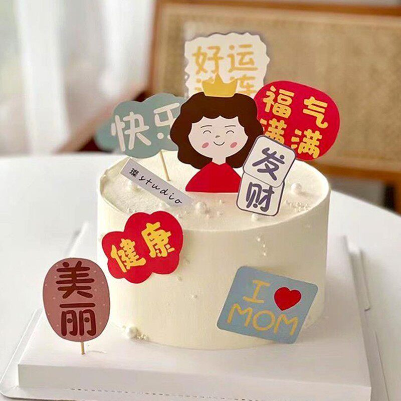 淘宝母亲节父亲节生日蛋糕装饰插牌妈妈爸爸福气满满健康快乐烘焙插件
