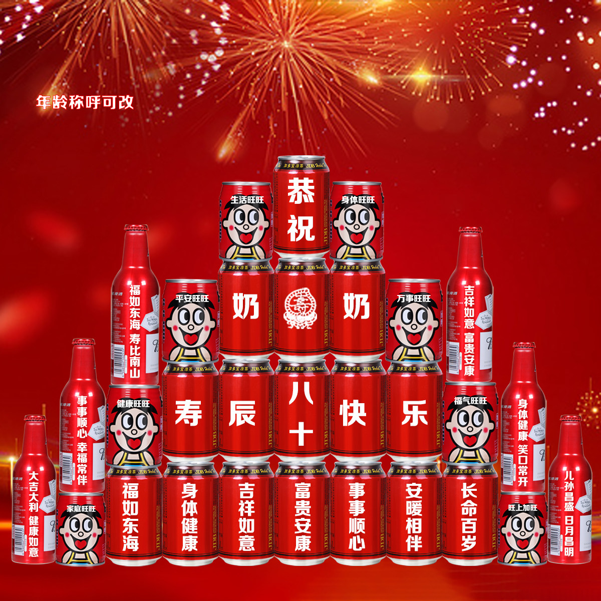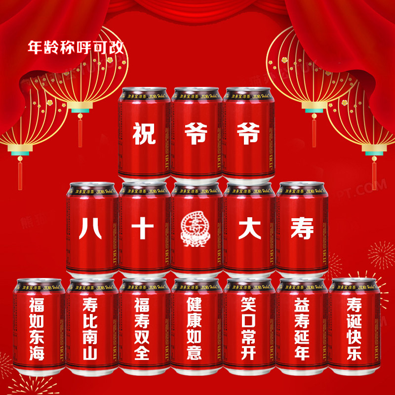 淘宝加多宝定制易拉罐刻字王老吉爸爸妈妈生日爷爷奶奶寿宴场景布置