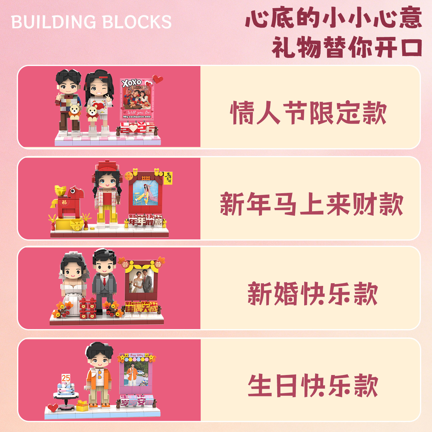 天猫2026情人节礼物送朋友男女友diy创意积木定制人像小人偶生日手办